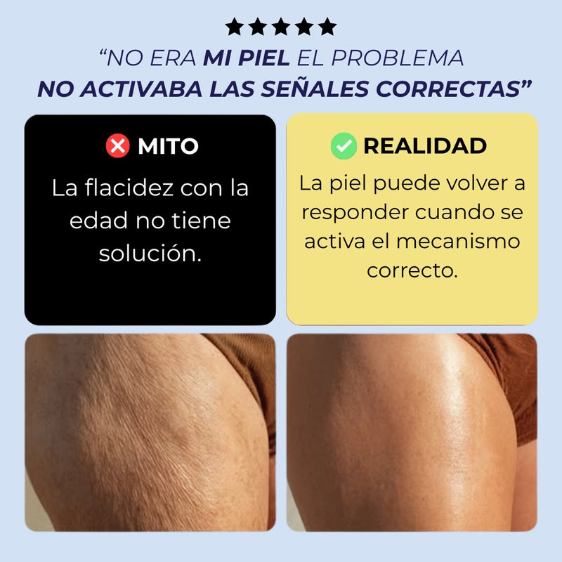 Funciona mejorando la apariencia, textura y firmeza progresiva de la piel, incluso en casos donde la piel ya no responde como antes.