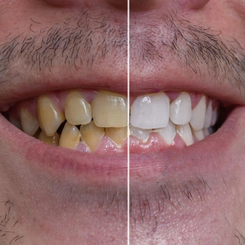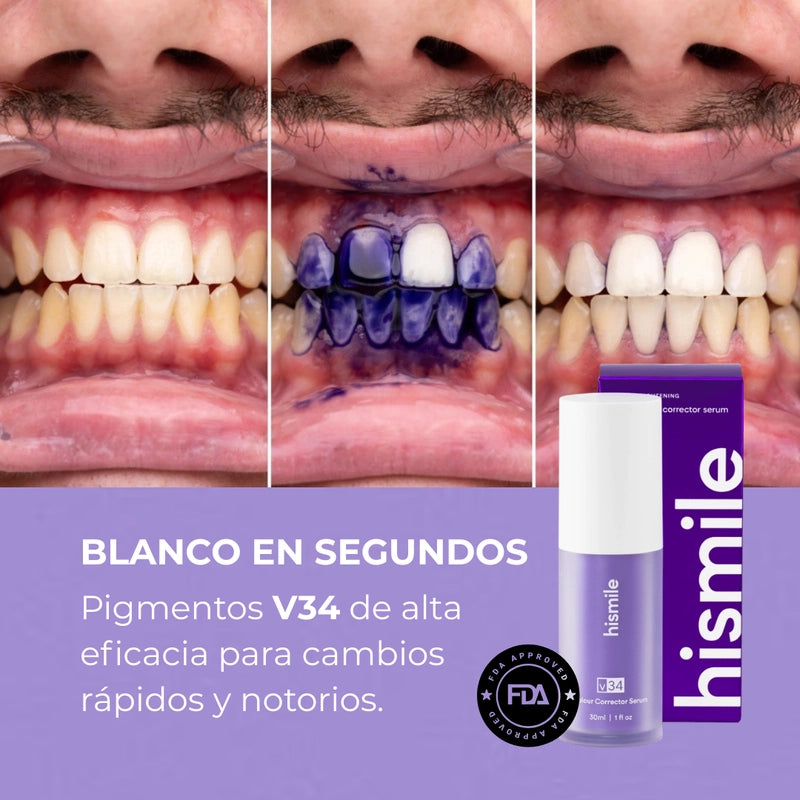 Los blanqueadores tradicionales lo desgastan; HiSmile V34 lo equilibra con pigmentos violetas que neutralizan el amarillo al instante.